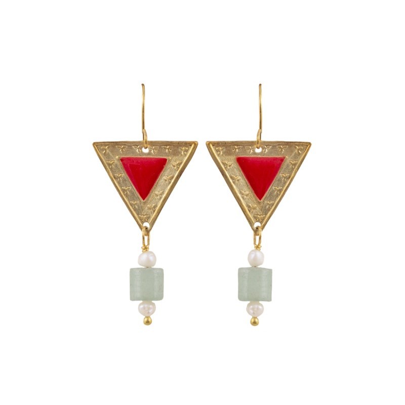 Boucles d'oreilles typiquement romaines, composées d'un triangle inversé et d'un pendentif.