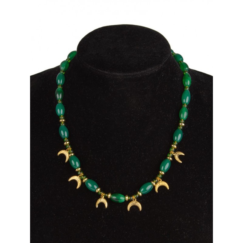 Collier romain de pierres naturelles et de lunules en laiton.