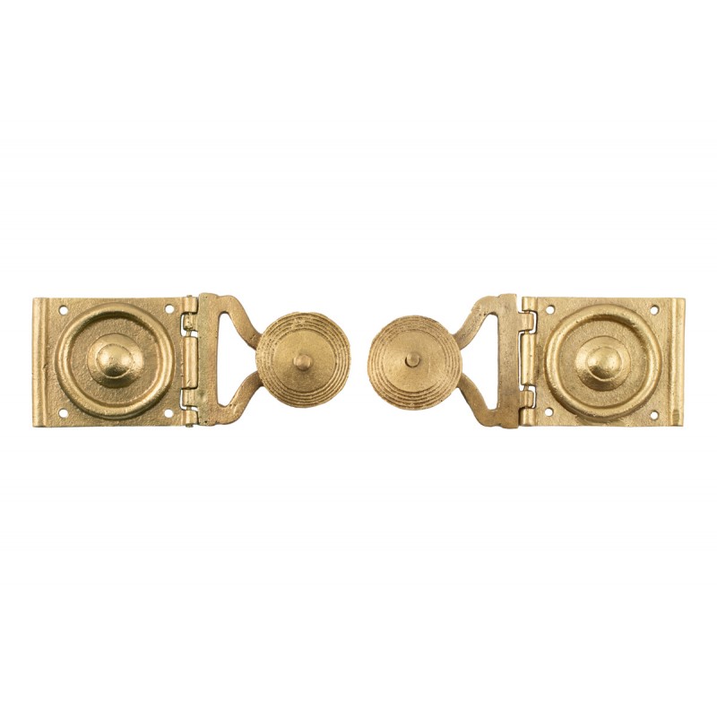 Ces supports pugio comprennent une plaque articulée. La pièce reproduit de fréquentes découvertes archéologiques (Rheingönheim, Velsen, Naples) qui répondent à ce modèle de cercles concentriques et de bords inclinés.