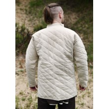 Il gambesone è un accessorio indispensabile per la rievocazione medievale. Il gambesone, chiamato velmez nell'antico castigliano, è una sorta di farsetto imbottito che veniva indossato sotto la cotta di maglia o l'armatura a piastre. Il gambesone medievale rendeva l'uso di questa armatura d'acciaio più confortevole per i guerrieri del medioevo. In realtà, molti autori sottolineano che l'origine del gambesone è probabilmente da far risalire a Bisanzio, dove è sopravvissuto fin dall'antichità.