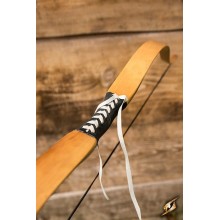 Questo arco presenta un nucleo nascosto in fibra di vetro, rivestito con lastre di legno che gli conferiscono un aspetto rustico e realistico. Un rinforzo in pelle rende l'impugnatura un'esperienza di qualità storica.
