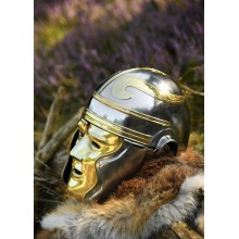 Questo elmo romano in particolare è ispirato a un originale ritrovato nell'attuale Bulgaria ed esposto al Metropolitan Museum di New York, negli Stati Uniti. Molto adatto per ricreare i signifer, i portabandiera delle legioni.