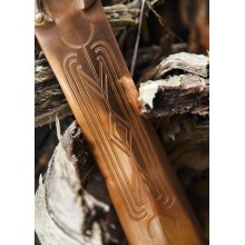 Questa replica di una spada corta dell'età del bronzo è realizzata con grande attenzione ai dettagli. È composta da due parti: un'elsa e una lama, entrambe fuse in bronzo e rivettate insieme. La lama è decorata con incisioni in stile celtico.