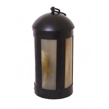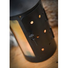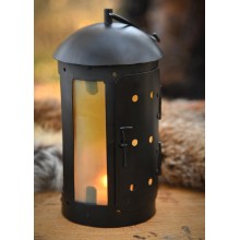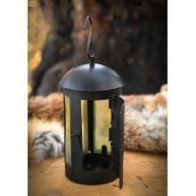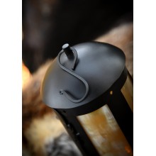 Lanterna in ferro con autentiche finestre in corno. È realizzata interamente a mano, utilizzando cerniere e rivetti. La consegna include un gancio a S per appenderla a una tenda o a una parete. Una candela (non inclusa) può essere inserita attraverso la porticina, fissata con un perno di ferro, per renderla perfettamente funzionante.