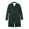 Questa giacca è realizzata in lana con una morbida fodera in cotone bianco. I sei bottoni anteriori e i due posteriori sono anch'essi ricoperti in lana nello stesso elegante colore verde scuro.