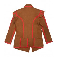 Questo farsetto si chiude con bottoni ed è realizzato in panno di lana marrone o blu (selezionare al momento dell'acquisto) con una morbida fodera in cotone. Le decorazioni con nastri rossi gli conferiscono un aspetto unico.