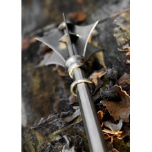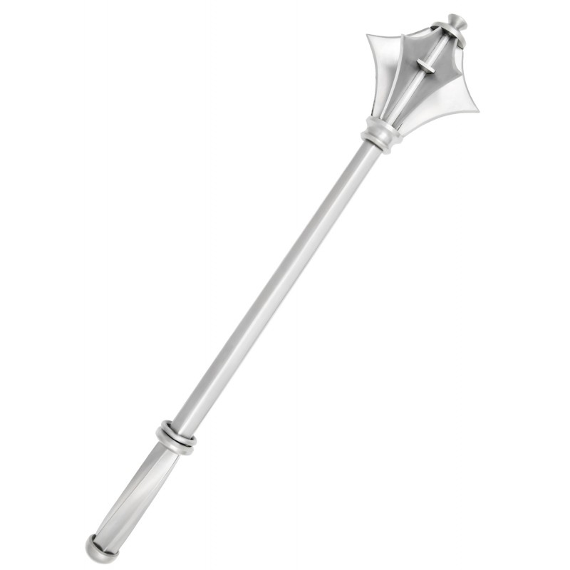 Le mazze di solito incorporavano elementi taglienti o affilati. Questa mazza, di tipo gotico, incorpora una serie di lame affilate per aumentare i danni alle armature del nemico. La mazza è interamente in acciaio con sei lame appuntite. La nostra replica storica è realizzata esclusivamente a scopo di rievocazione o decorazione.