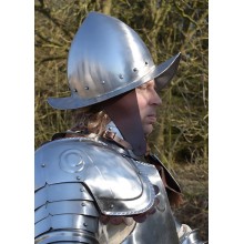 Presentiamo qui un kit completo per il corseletto, pronto all'uso. È realizzato in acciaio di 1,2 mm di spessore. Si tratta di un equipaggiamento per la fanteria pesante dei Tercios del XVI secolo. Le parti dell'armatura sono fissate con robuste cinghie di cuoio e fibbie. Questa armatura è quindi regolabile nelle dimensioni.