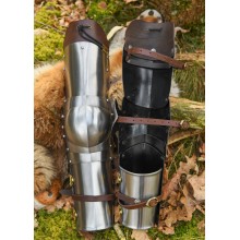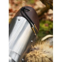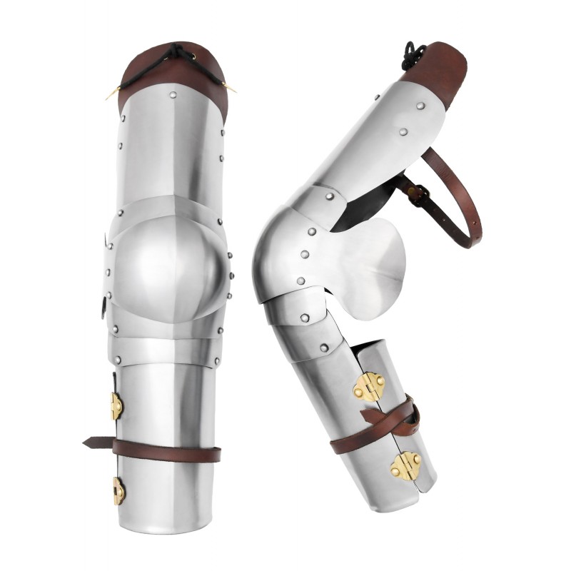 Questa riuscita replica storica è composta da due parti, l'avambraccio e il tutore, che si articolano grazie al codale, che incorpora cerniere in ottone. Le protezioni interne in pelle lo rendono comodo da usare. Inoltre, tre cinghie di cuoio con fibbie in ottone rivettate servono a regolarlo e a fissarlo al braccio. Può anche essere collegato con corde di cuoio alle spalline o al gambesone.