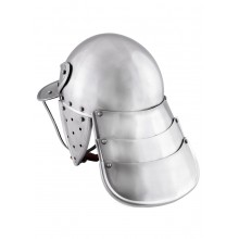 Replica in acciaio di un elmo0 coda d'aragosta, un tipo di elmo di ispirazione orientale, reso popolare dai corazzieri dei Tercios negli anni Sessanta del Novecento (all'epoca conosciuti come cavalli corazzieri). Questo tipo di elmo è stato innovato dalla cavalleria ussara come quella polacca e ungherese, adattando disegni turchi preesistenti, e rappresentò una certa evoluzione della celata borgognona.