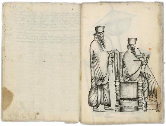 Dettaglio di uno dei rilievi del palazzo di Persepoli secondo il manoscritto. Crediti foto: BNE. Fonte: Biblioteca Digital Hispánica (BDH)